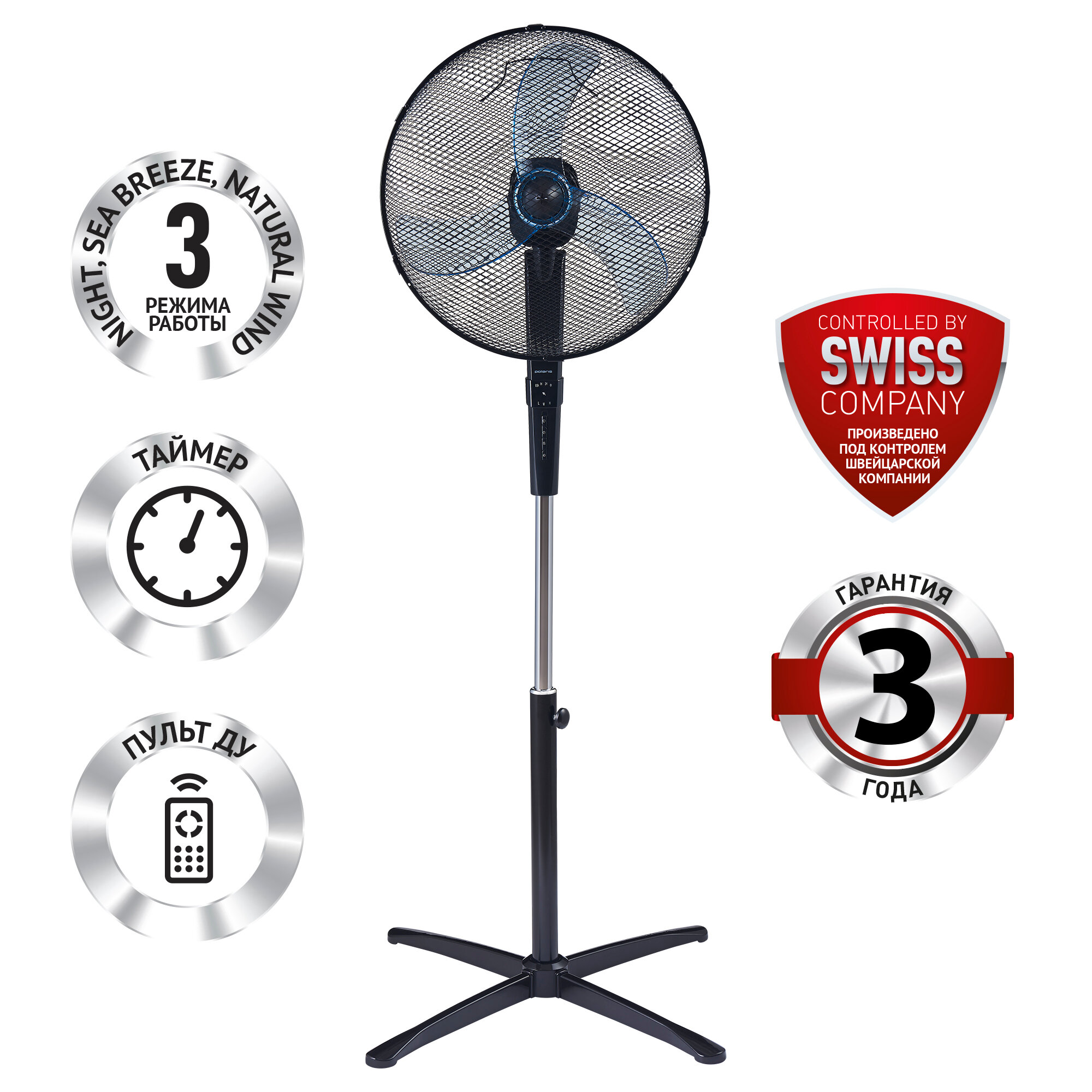 Вентилятор напольный Polaris PSF 5040RC, LEDдисплей 55Вт диам.40 см,3 скор.
