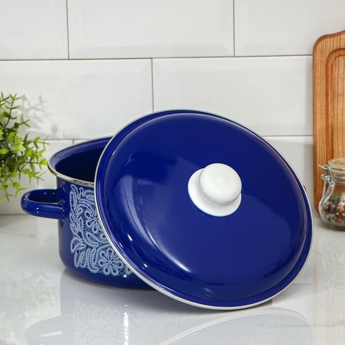 Кастрюля «Вологодское кружево», 5 л, эмалированная крышка, индукция, цвет синий