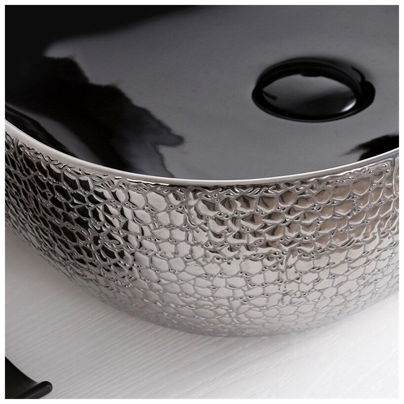 Лучшие цены. Раковина-чаша Mira 51 MR-5141BS прямоугольная. Подходит для ванных комнат различной планировки в современном стиле и отличается стильной и изящной формой.Материал: сакнфаянс. Материал высокого качества проходит ряд термических обработок, что позволяет раковине долгое время оставаться крепкой и сохранять блеск покрытия.Размеры (ШхВхД): 51х14х41 см.Установка: накладная.Цвет: черный, серебро.В комплекте поставки: раковина. Магазины в вашем городе.