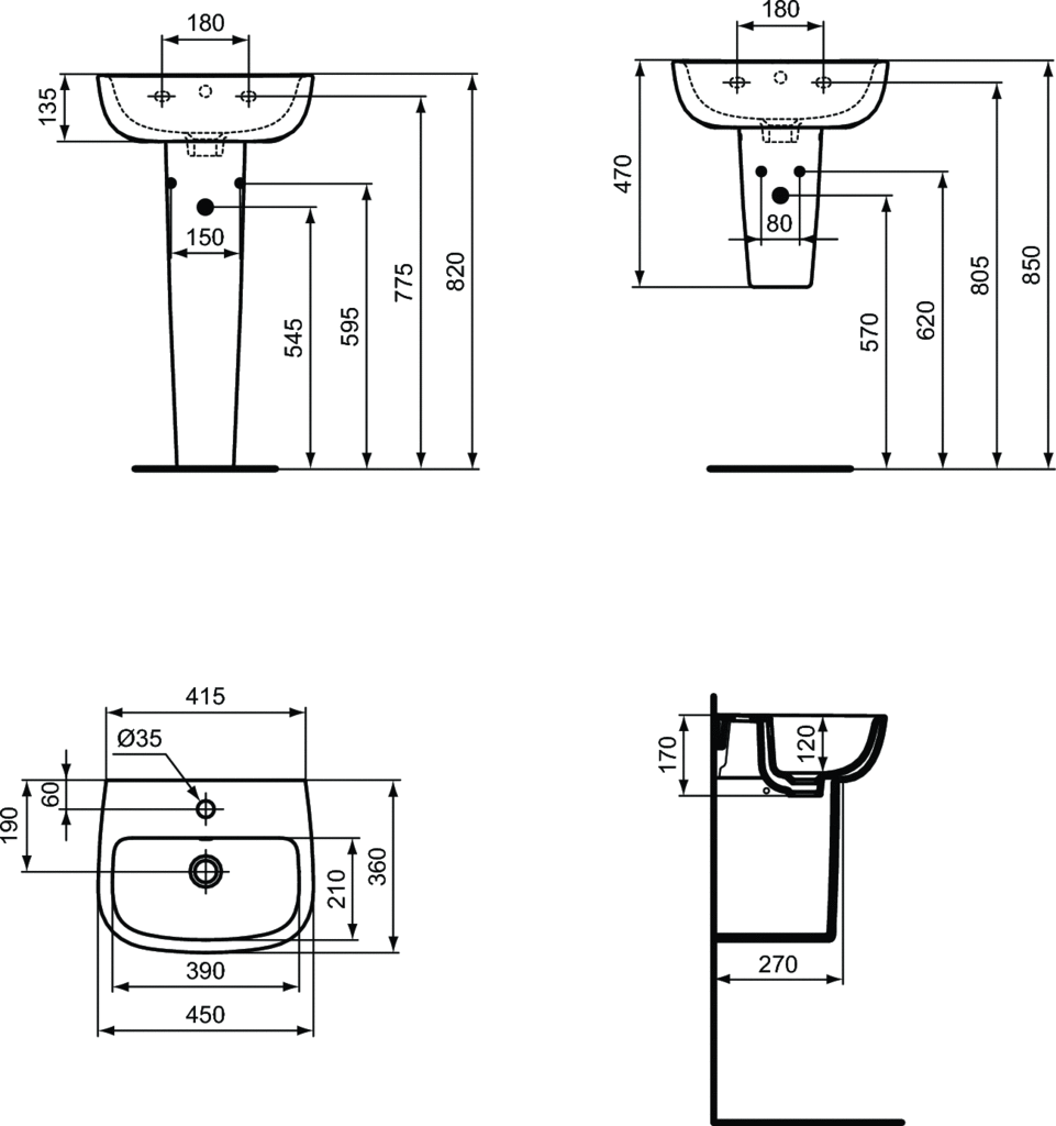 Умывальник Раковина 45 см Ideal Standard Esedra T281101, белый