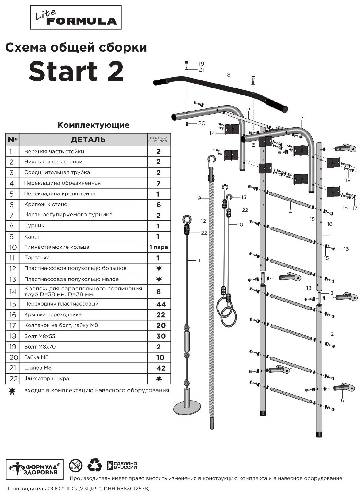 | Компоненты | лестница, турник перевешиваемый, канат, гимнастические кольца, качели |