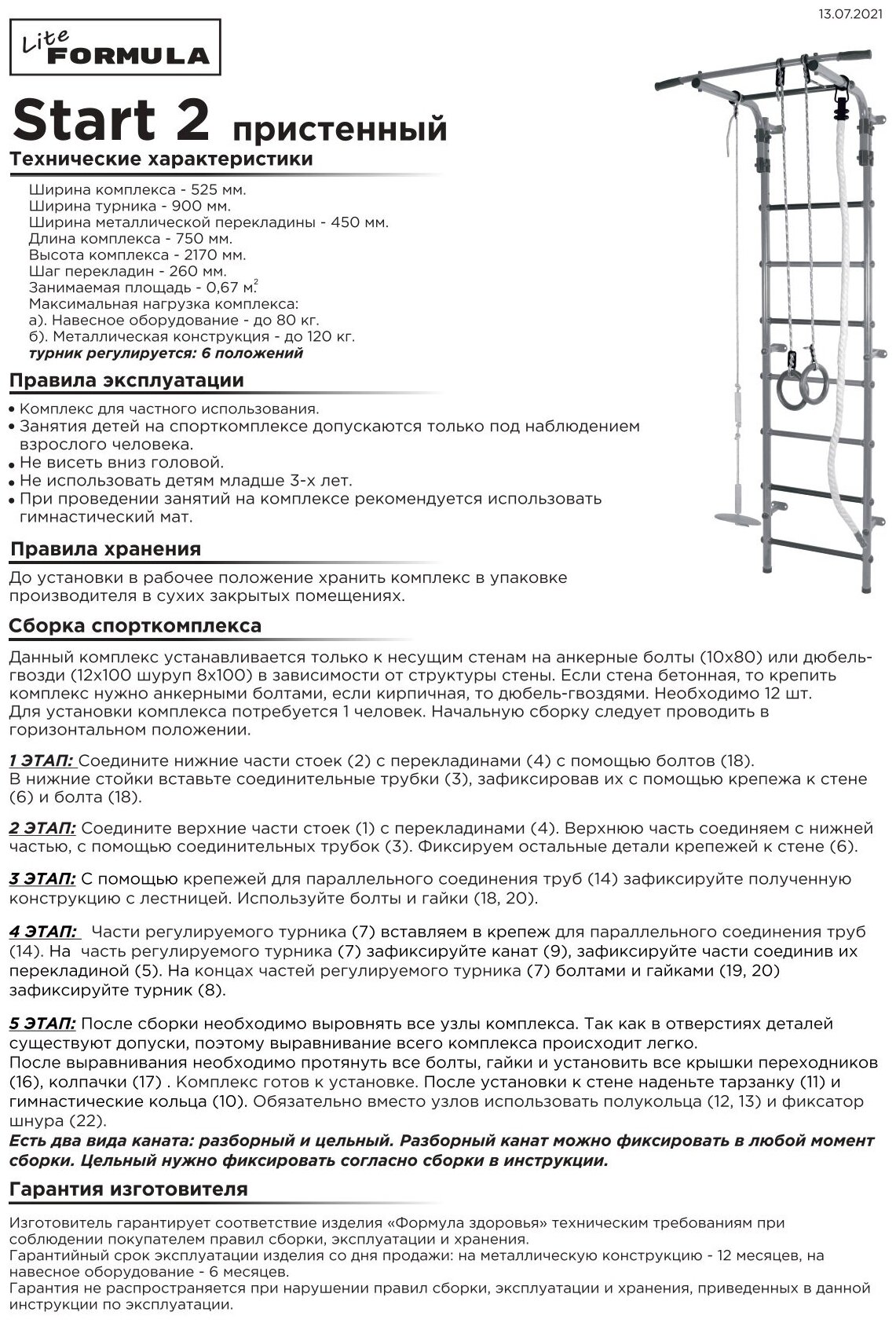 | Ширина | 90 см (по турнику; 52.5 см / по лестнице) |