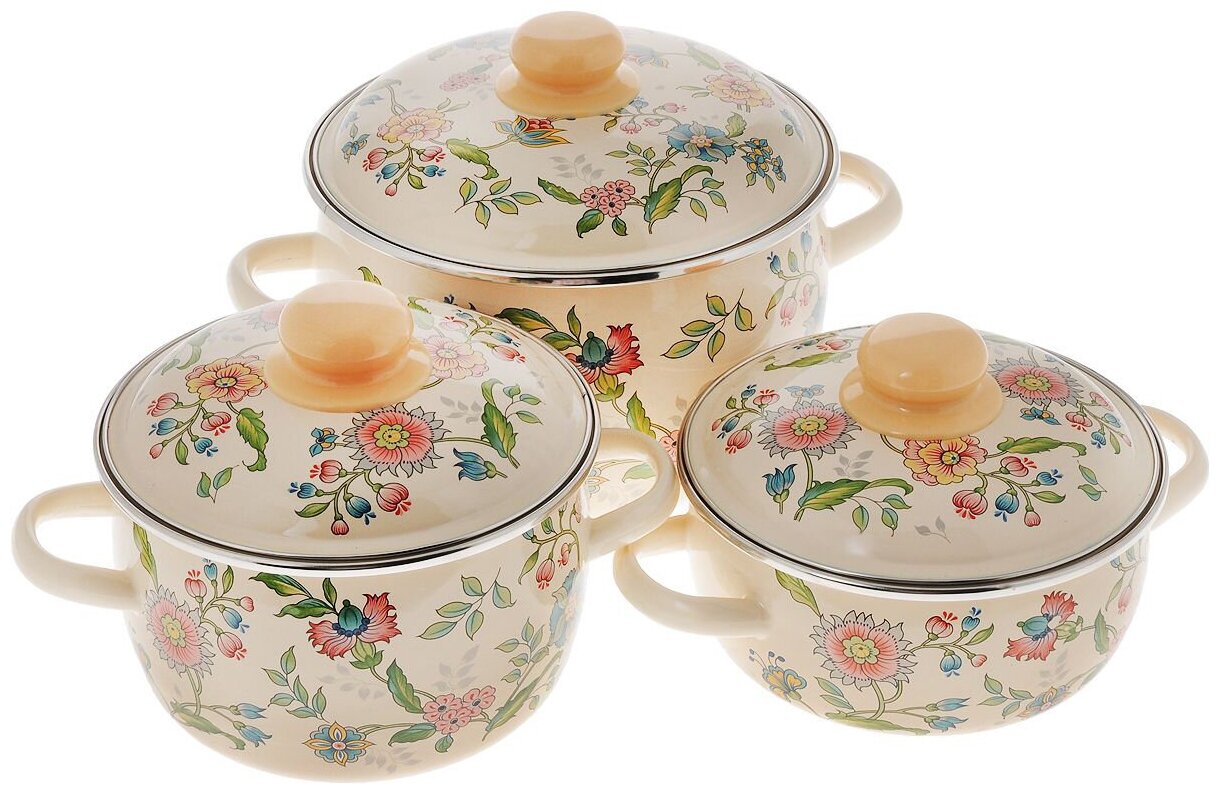 Кастрюля Набор стальэмаль № 02 "луговые цветы" (Кастрюли сфер.2л, 3л, 4л) (1) 3KA021M