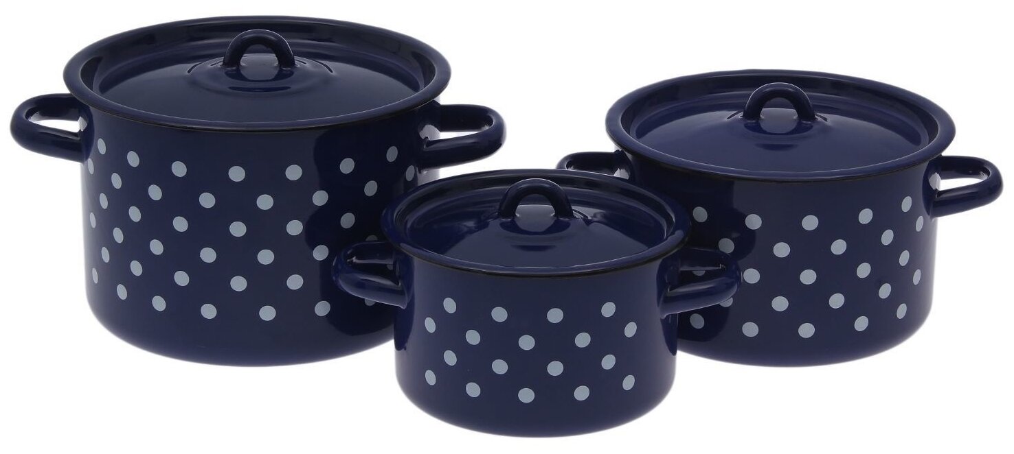 Стальэмаль Набор кастрюль «Голубика», 3 предмета: 1,5 л, 2,9 л, 4,5 л, эмалированные крышки, индукция, цвет синий