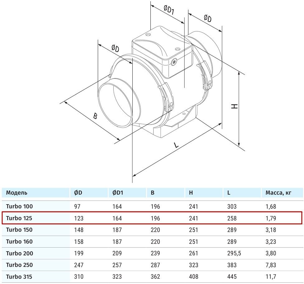 Вытяжные вентиляторы Канальный вентилятор Blauberg Turbo 125 серый
