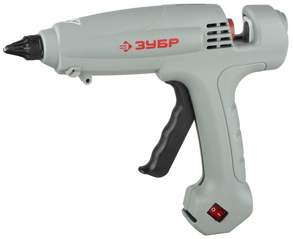 Пистолет ЗУБР клеевой (термоклеящий), эл, эргоном рукоятка, выключатель на рукоятке, рабоч темп 193град, d=12мм, 180Вт