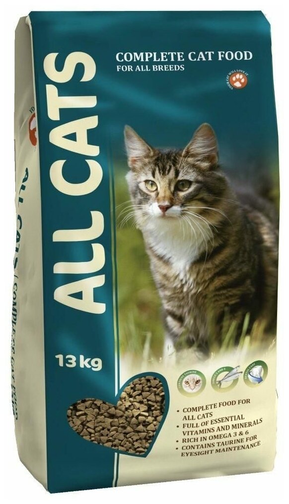 Лучшие цены. Сухой корм Ол Кэтс для кошек - ALL CATS - это полнорационный корм для кошек всех пород. Он разработан на основе результатов последних исследований в области питания домашних животных, а также с учетом требований международных стандартов. ALL CATS идеально подходит в качестве полноценного питания, поскольку содержит жизненно важные витамины и минеральные вещества. Жирные кислоты Омега-3 и Омега-6, содержащиеся в составе, необходимы для здоровой кожи и красивой шерсти. Магазины в вашем городе.