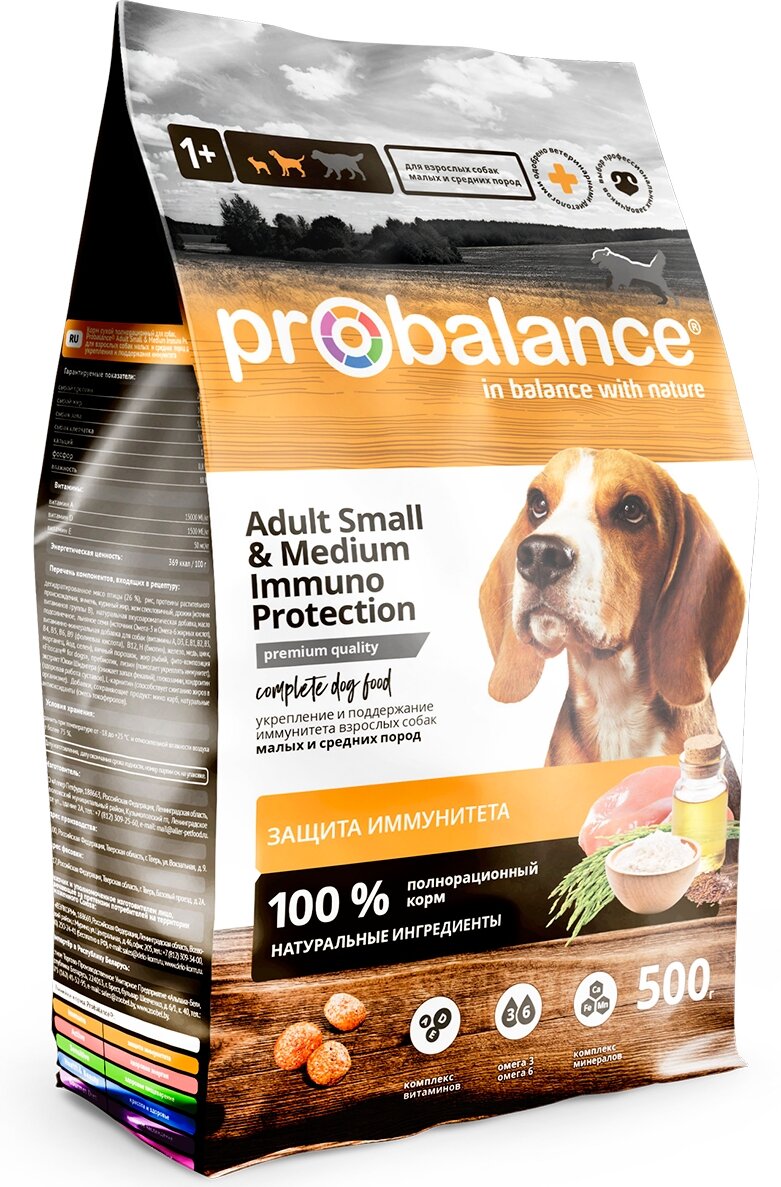 Корм для собак ProBalance Immuno Adult Small&Medium сухой для взрослых собак малых и средних пород, 0,5 кг