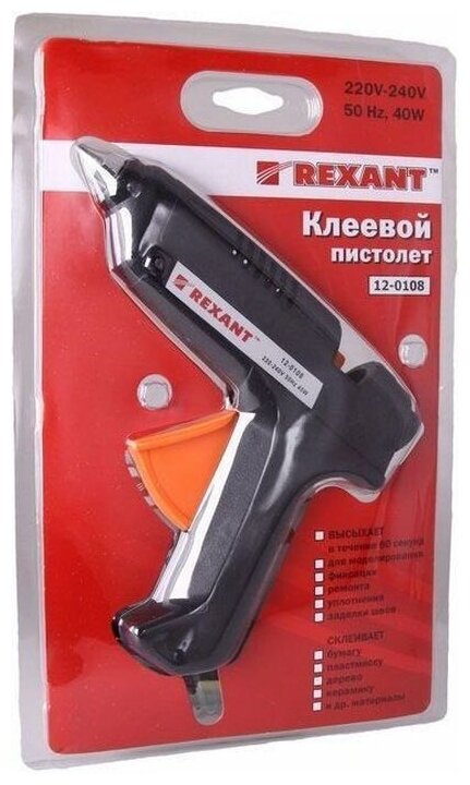 Клеевой пистолет Пистолет клеевой 40 Вт 11 мм (блистер) REXANT (12-0108) , 1 шт.