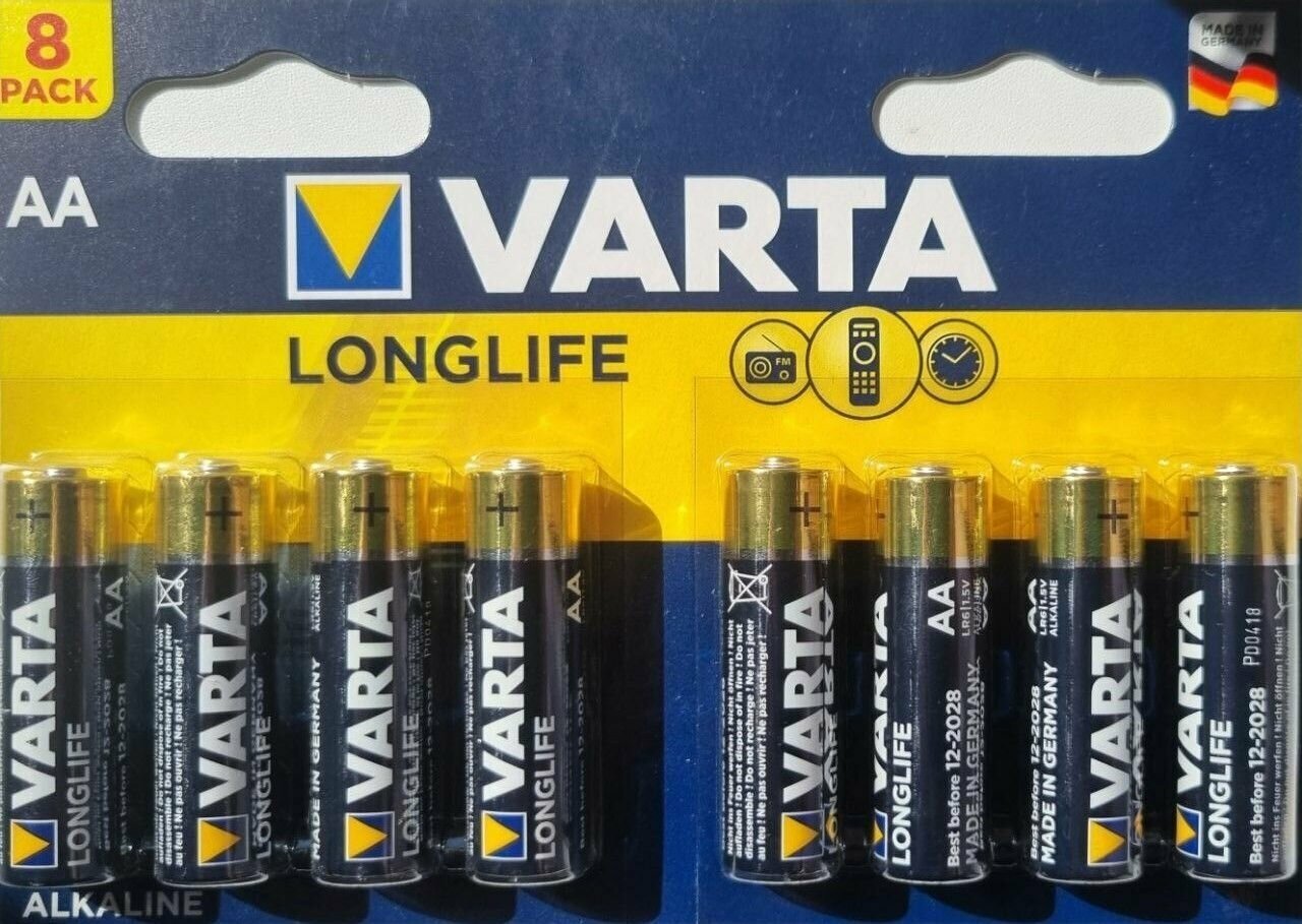 Батарейка VARTA LONGLIFE, AA (LR6), 8 шт