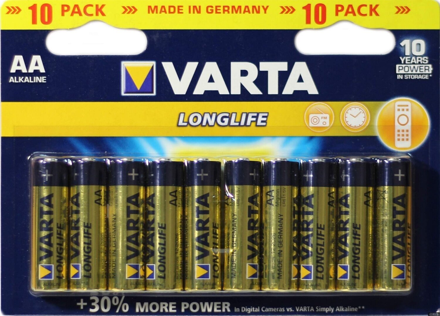 Батарейка VARTA LONGLIFE AA, в упаковке: 10 шт.