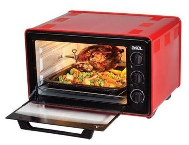 Электродуховка AKEL AF-740 (36 л, красная, 2 противня, ТЭН повышенной мощности, гриль, таймер, терморегулятор)