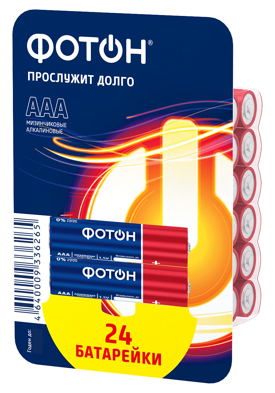 Батарейка фотон Alkaline, 1.5 В, LR03 BP24