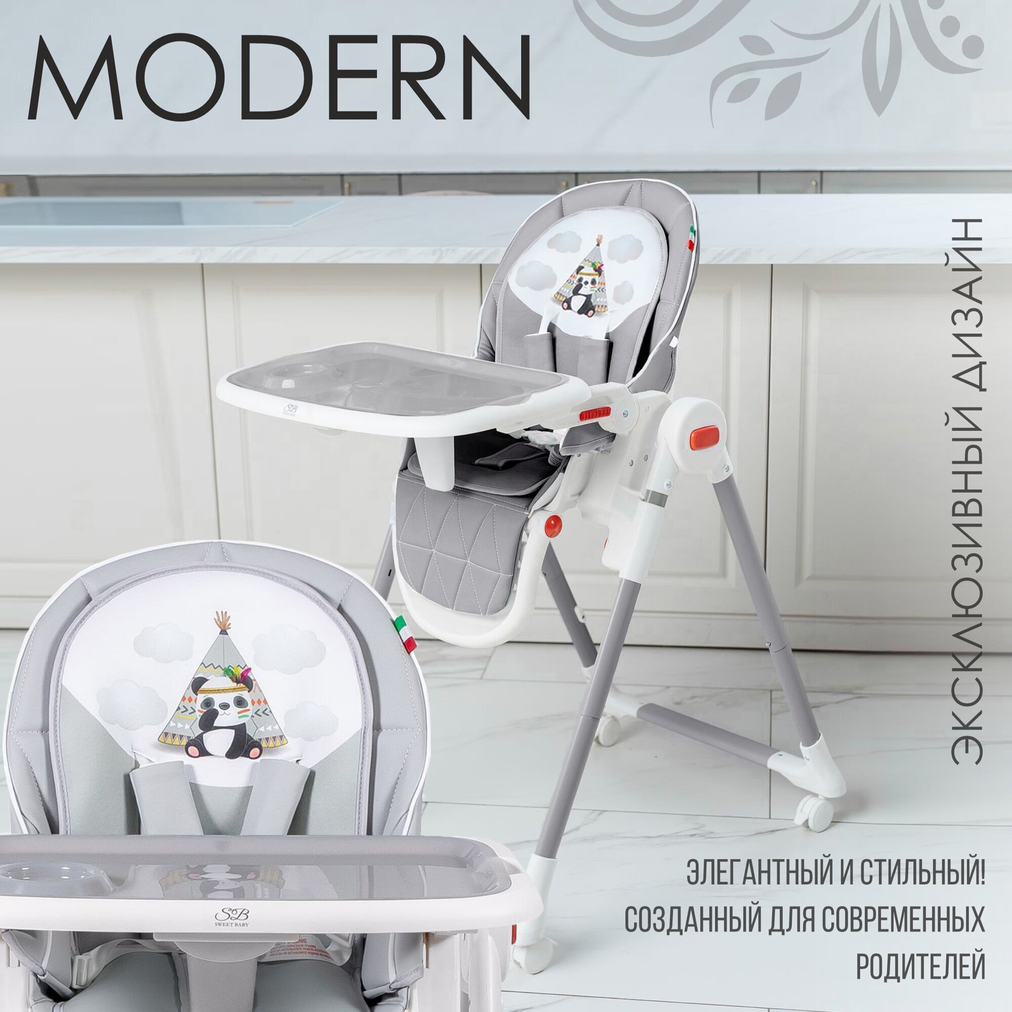 Стульчик для кормления Стульчик для кормления Sweet Baby Modern, Gray