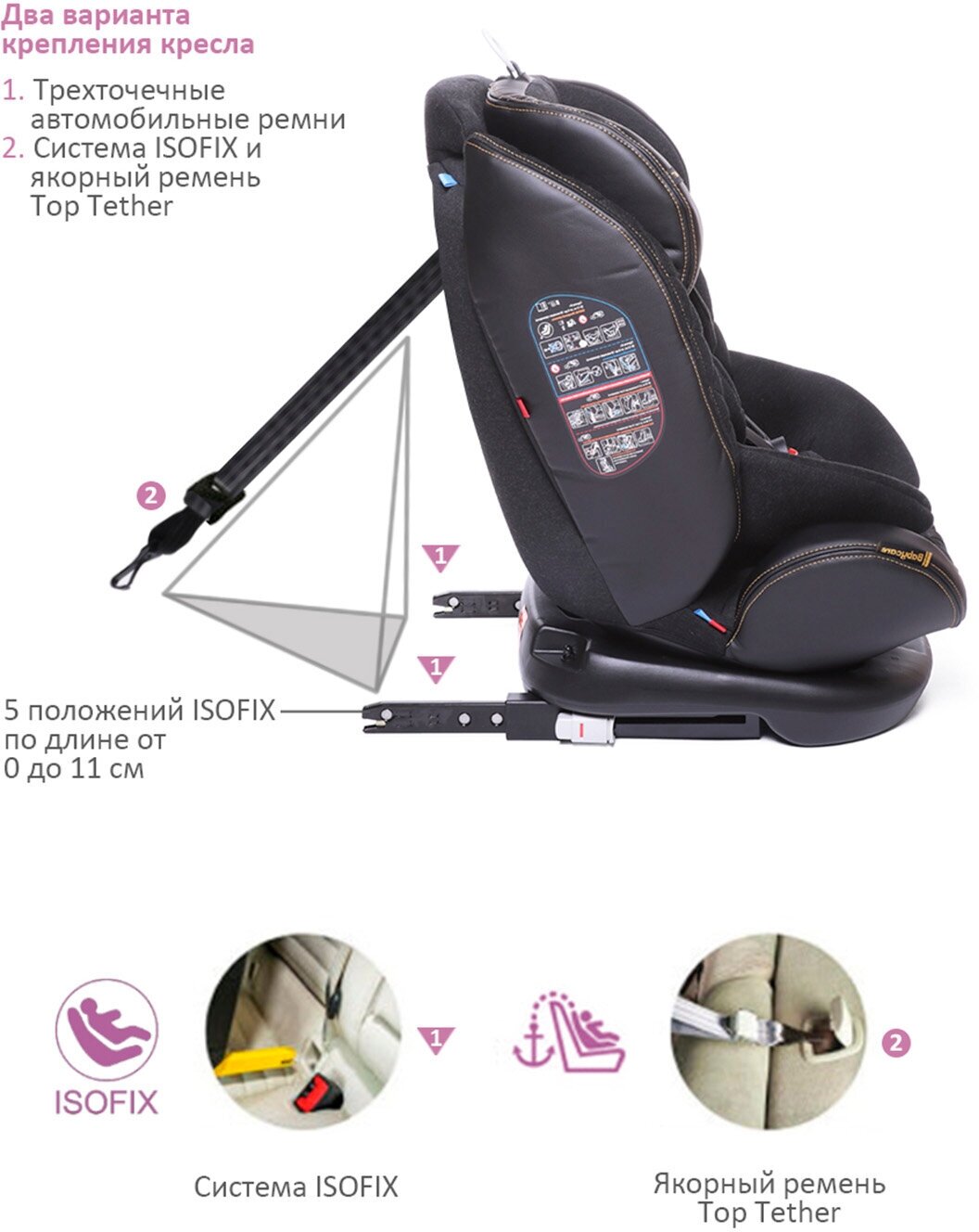 Крепление | ремнем безопасности / якорный ремень (Top Tether) / ISOFIX |