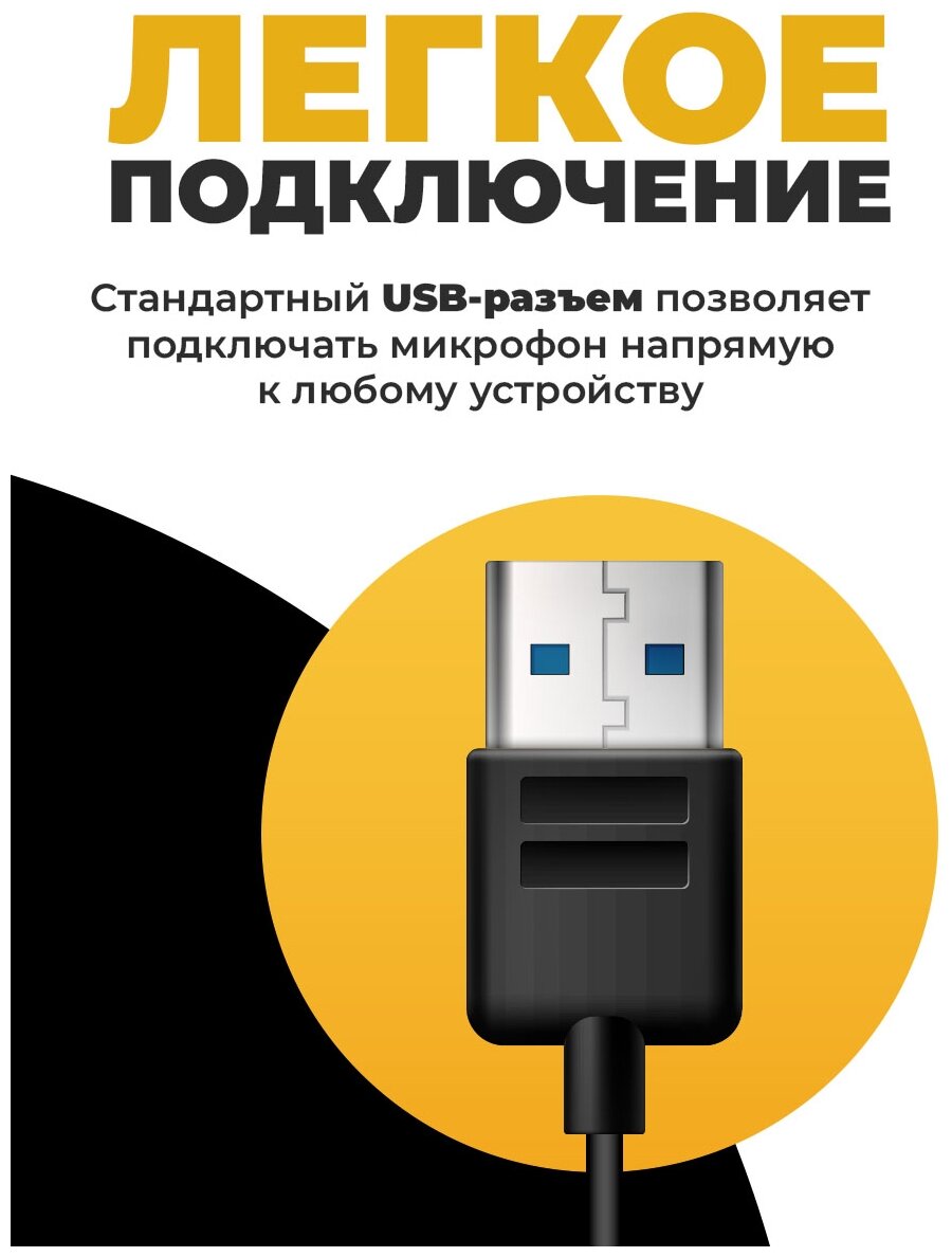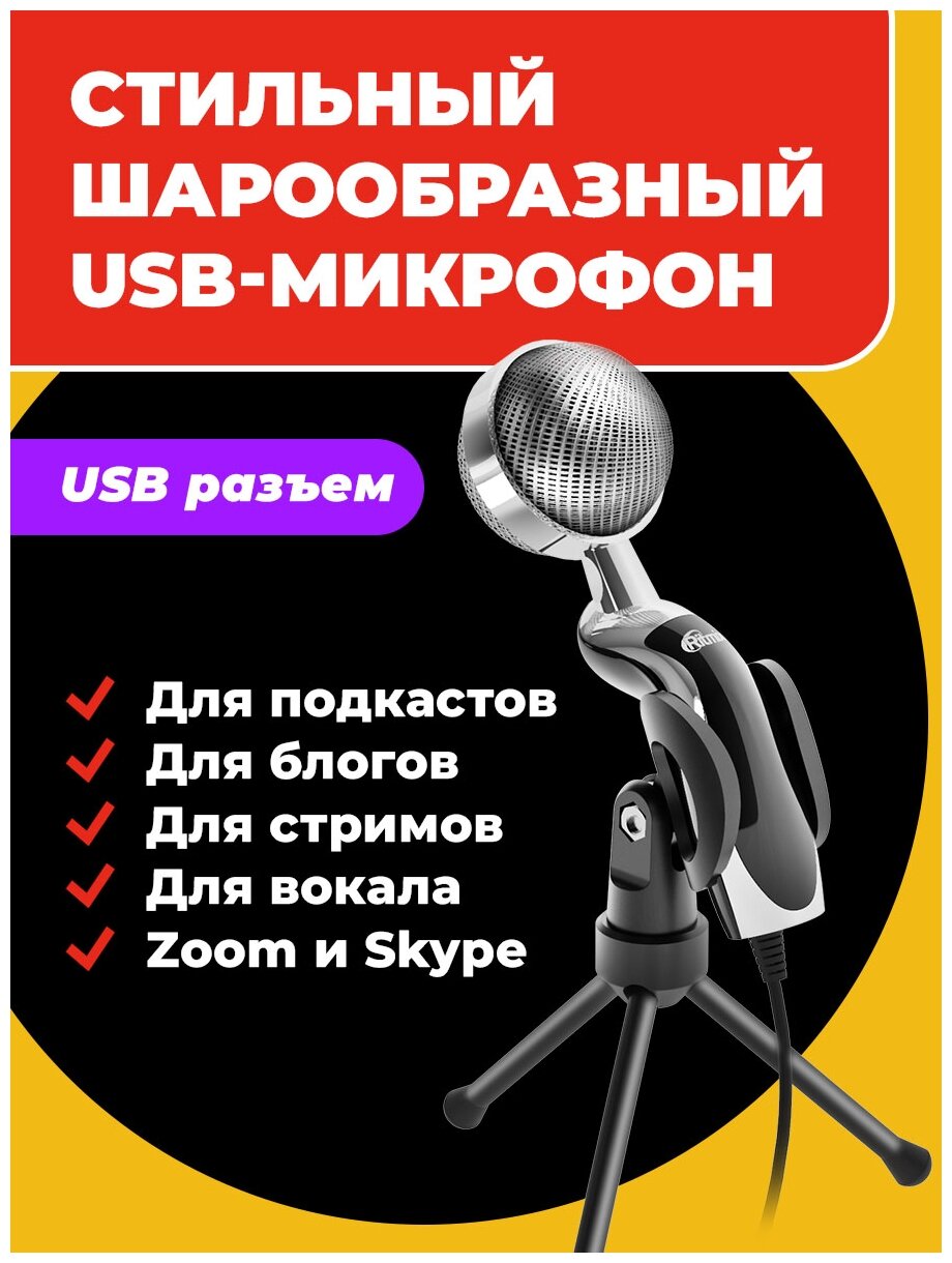 Лучшие цены. Конденсаторный микрофон на штативе-подставке, позволяющей комфортно расположить его на рабочем столе или другом удобном для вас месте. Предназначен для деятельности в таких сферах как: интервью, презентации, skype, звукозапись, игры, стриминг. Особенности: Для подключения микрофона просто вставьте USB-разъём в ваш компьютер. Включи и работай не требует установки драйверов. Микрофоны кардиоидной направленности наиболее чувствительны к звуку, расположенному спереди. Магазины в вашем городе.