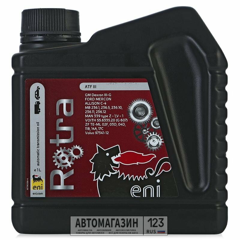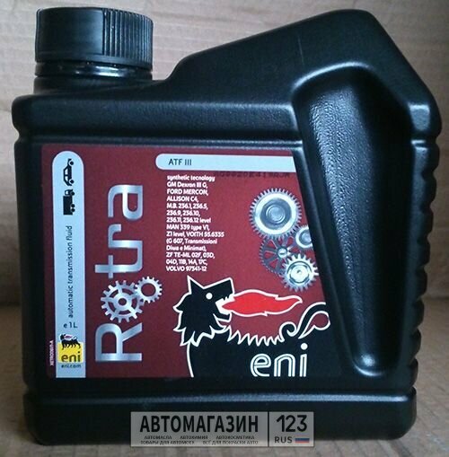 Лучшие цены. Производитель: Eni Объем: 1 Вязкость: Состав: Минеральное Eni Rotra ATF III - жидкость для автоматических трансмиссий и гидросистем, отвечающая требованиям спецификаций GM Dexron III, Ford Mercon, Allison C4, а также требованиям европейских автопроизводителей. Свойства И эксплуатационные качества. Eni Rotra ATF III имеет высокую стабильность к окислению, что обеспечивает безупречную чистоту трансмиссий. Жидкость обладает стабильностью фрикционных свойств, что подтверждено циклом испытаний на их прочность. Магазины в вашем городе.