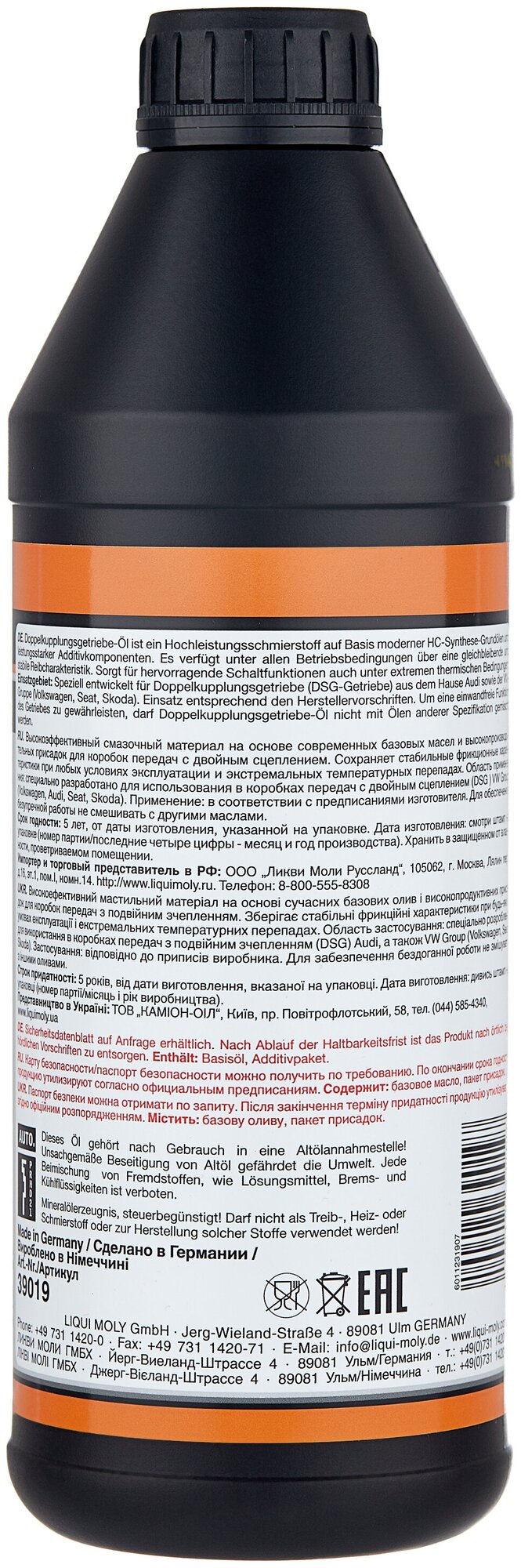 LIQUI MOLY 3640 Снят, замена 39019 НС-синт. тр.масло для DSG Doppelkupplungsgetriebe-Oil 8100 (1л)