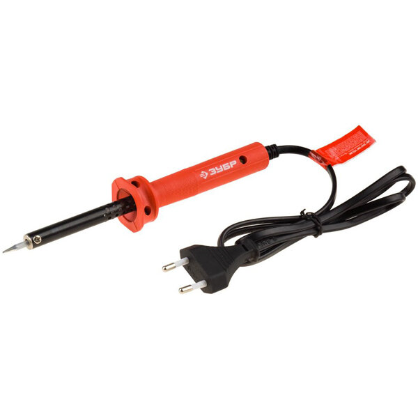 Электропаяльник с пластмассовой рукояткой и долговечным жалом, форма клин, 80Вт Зубр мастер 55400-80_z01