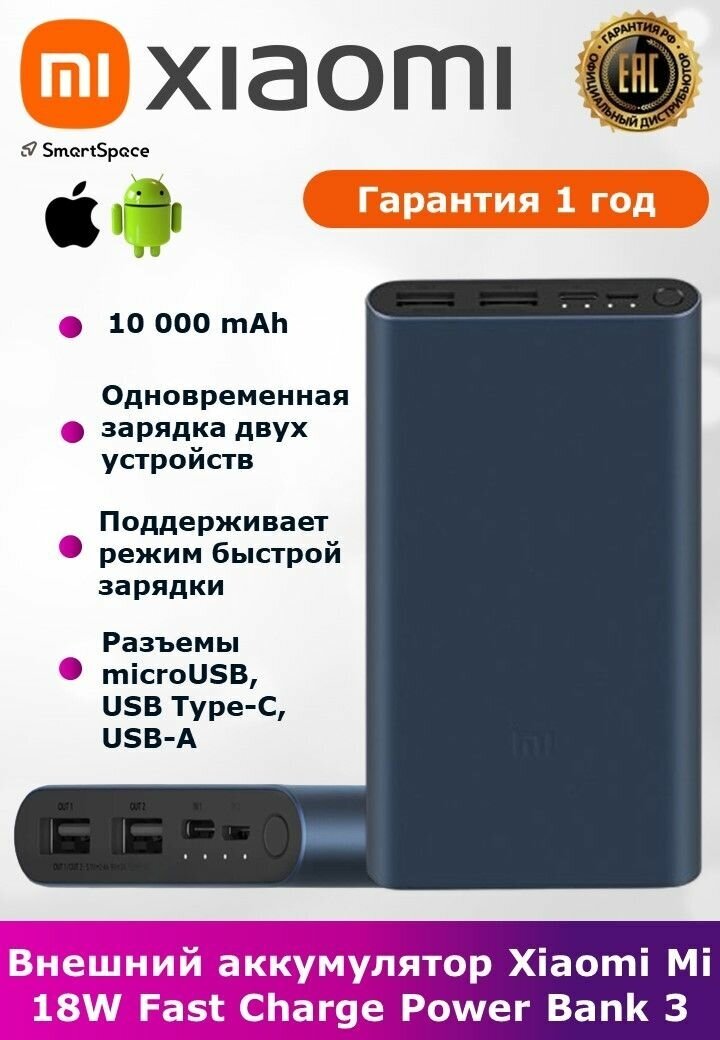 Xiaomi Mi Power Bank 3 (22.5W) 10000 mAh (синий) 3 150 ₽ Подробнее