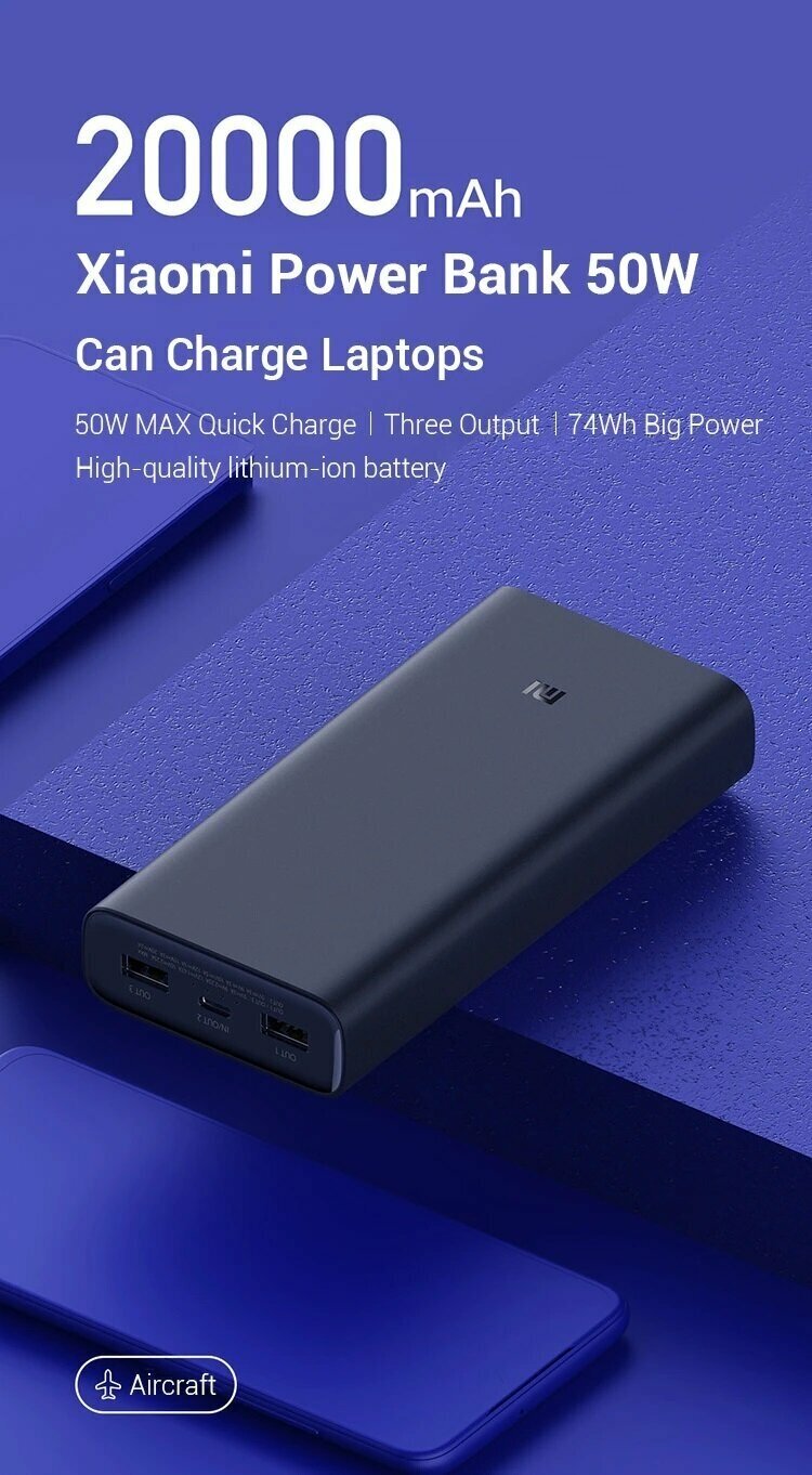 Аккумуляторы powerbank 50W Power Bank 20000 Xiaomi Mi емкостью 20000 мАч - переносная зарядка для телефона - аккумуляторы