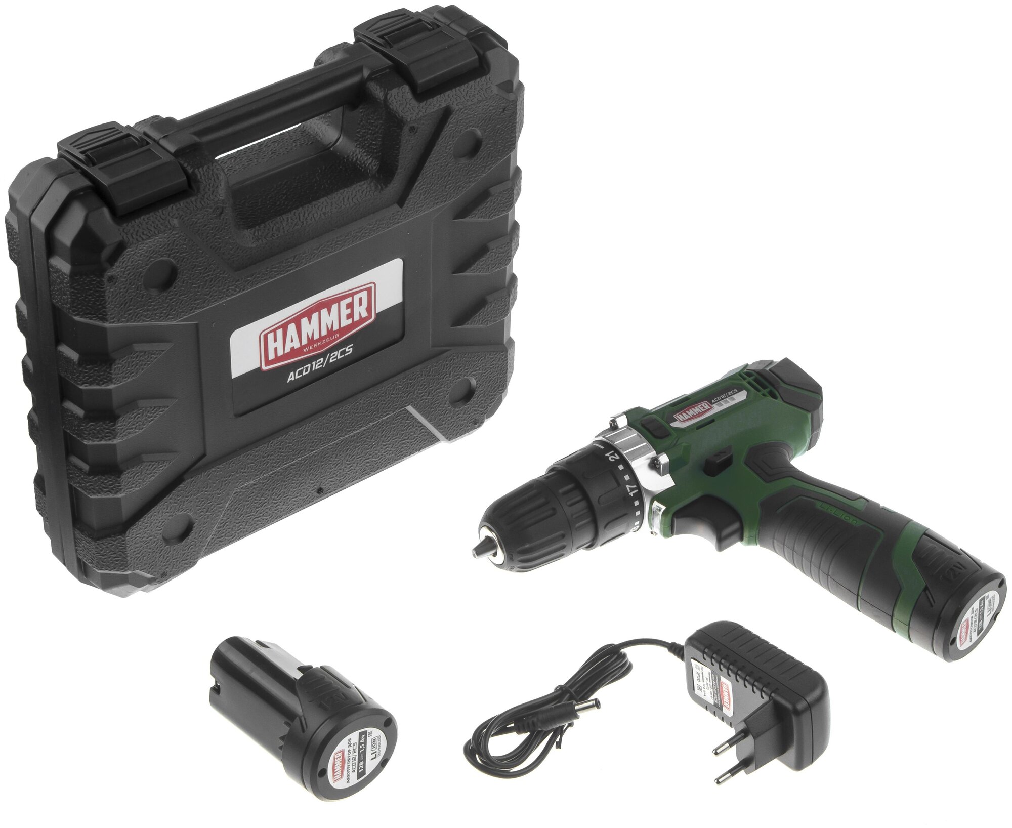 Дрель-шуруповерт аккумуляторная Hammer ACD12/2CS 630797 12В black-green