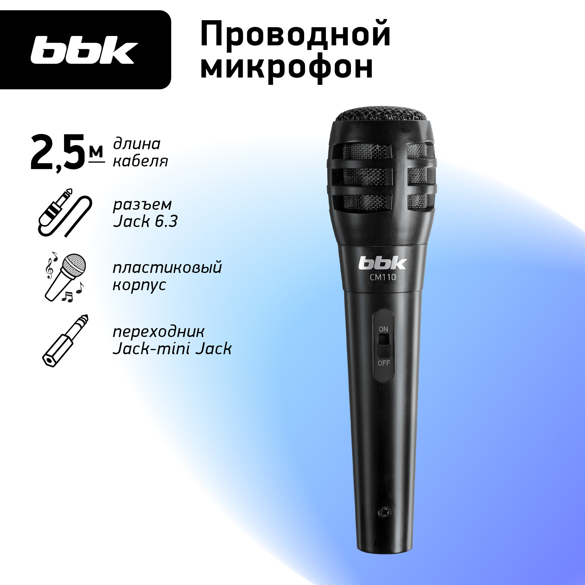 Микрофоны Микрофон универсальный динамический проводной BBK CM110 черный