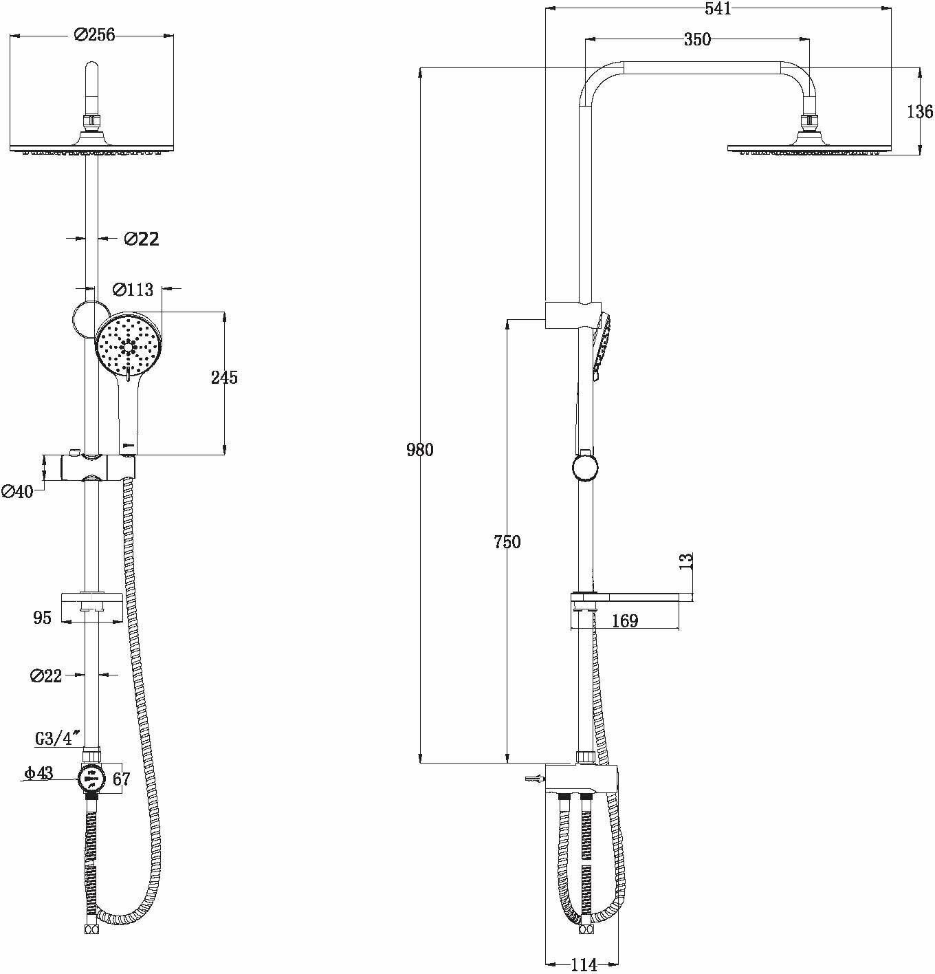 | Размеры верхнего душа | 256 мм |