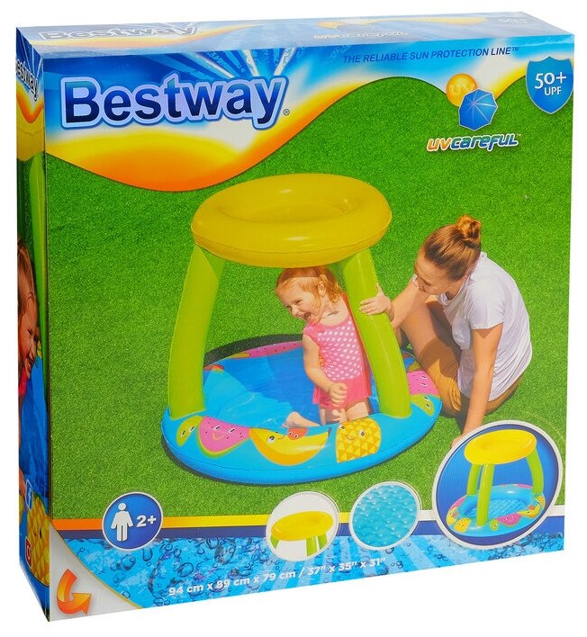 Детский надувной бассейн 94х89х79см BESTWAY "Фрукты" с навесом и надувным дном, 26л, от 2 лет, 52331