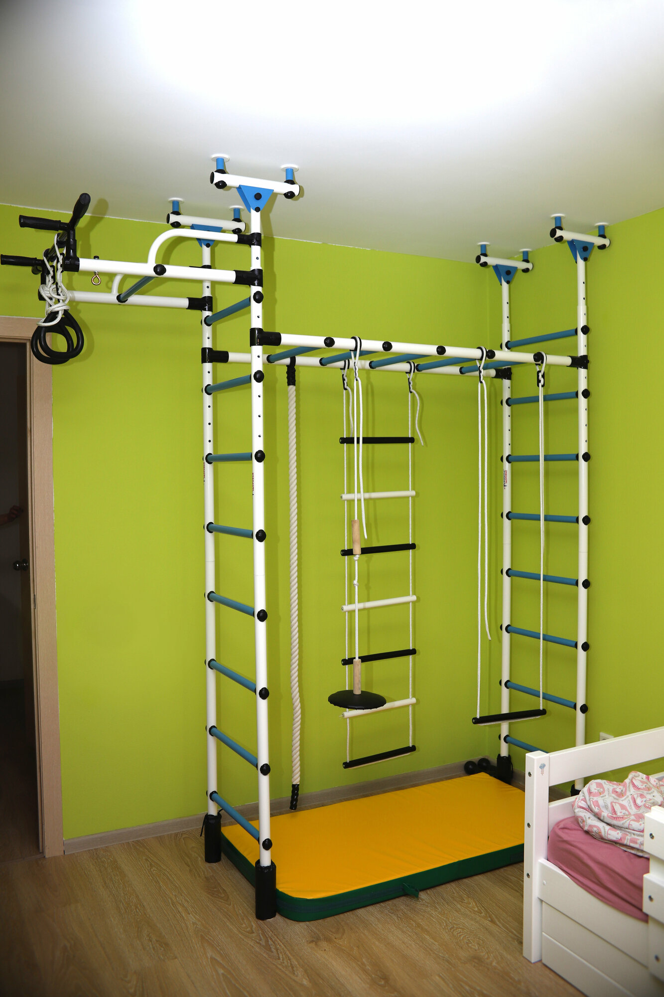 Спортивно-игровой комплекс распорный Слоненок (Белый-Салатовый) - детская шведская стенка для дома Формула здоровья
