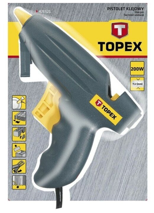 Клеевой пистолет Клеевой пистолет TOPEX 42E521, 200 Вт черный/желтый