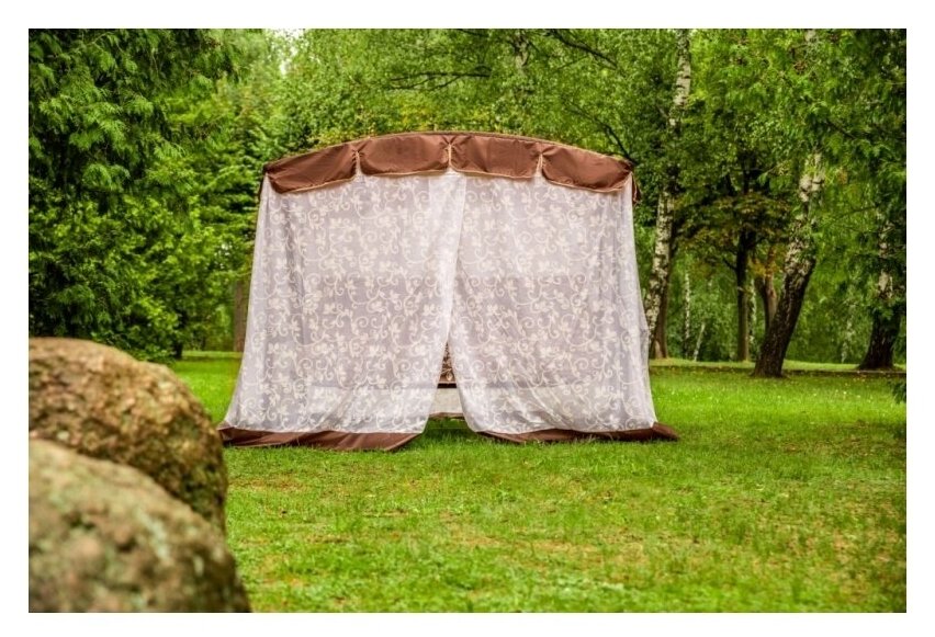 Качели с тентом трехместные Азалия, Цвет обивки: коричневый, Цвет корпуса: коричневый