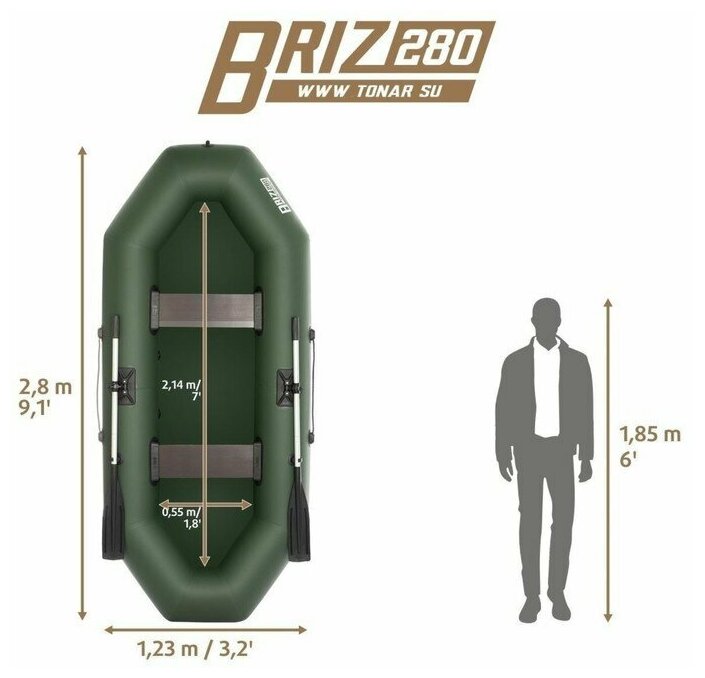 Лодка ПВХ Тонар надувная Бриз-280 гребная зеленая