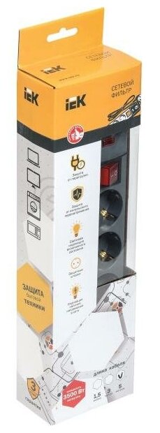 Сетевой фильтр Iek СФ-05К-выкл. 5 мест 2P+PE/3метра 3х1мм2(WFP10-16-05-05-ZK-K02)