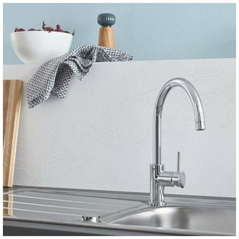 Смеситель для кухонной мойки GROHE BauClassic с высоким C-образным изливом, хром (31535001) 17 220 ₽ Подробнее