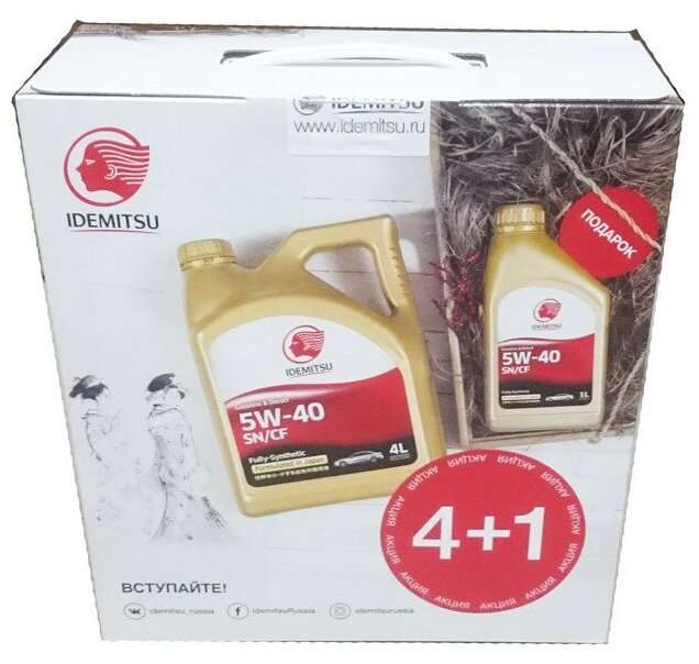Моторные масла IDEMITSU 30015048770A Моторное масло IDEMITSU 5W-40 SN/CF синтетика промо комплект (4л+1л)