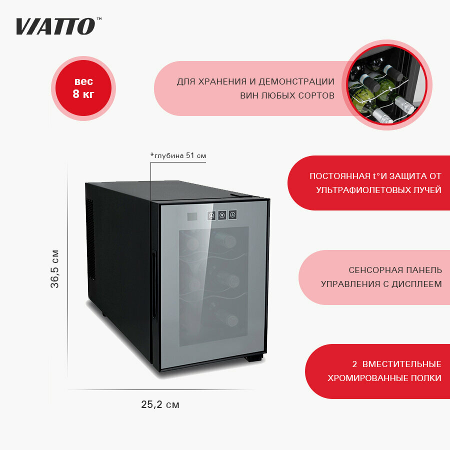 Винный холодильник VIATTO VA-JC16 на 6 бутылок / шкаф для вина / холодильник для вина