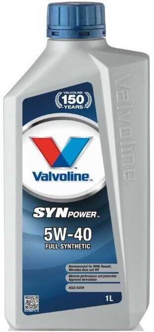 VALVOLINE 872380 Масло моторное синтетическое SYNPOWER 5W40 API SL/CF ACEA A3/B4 1л 1шт