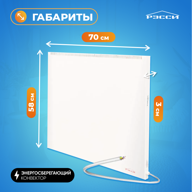 Обогреватель Рэсси 750 (14 кв. м.), белый, энергосберегающий конвектор