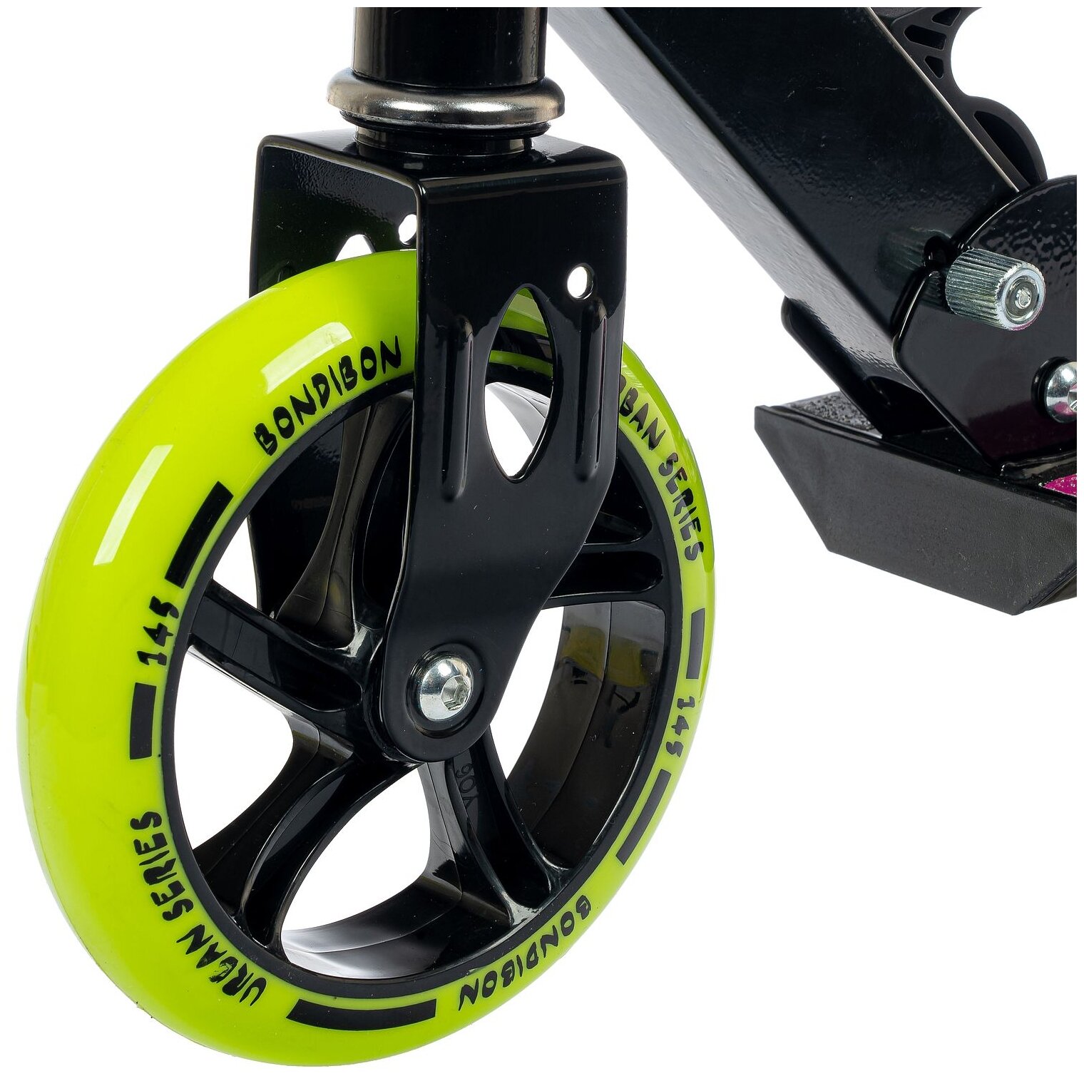 Лучшие цены. Самокат для детей и подростков BONDIBON NIMBUS, стальной, складной, колеса PU 145/125мм. Легкая конструкция самокатов позволит развить достаточно высокую скорость. Самокаты оснащены колесами из полиуретана, которые обеспечат повышенную износостойкость и легко справятся с неровностями дорожного покрытия. Высококачественные подшипники ABEC обеспечивают плавность и бесшумность хода. Комплектацию самоката дополняет наличие ножного тормоза, который поможет быстро остановиться перед неожиданным препятствием. Магазины в вашем городе.