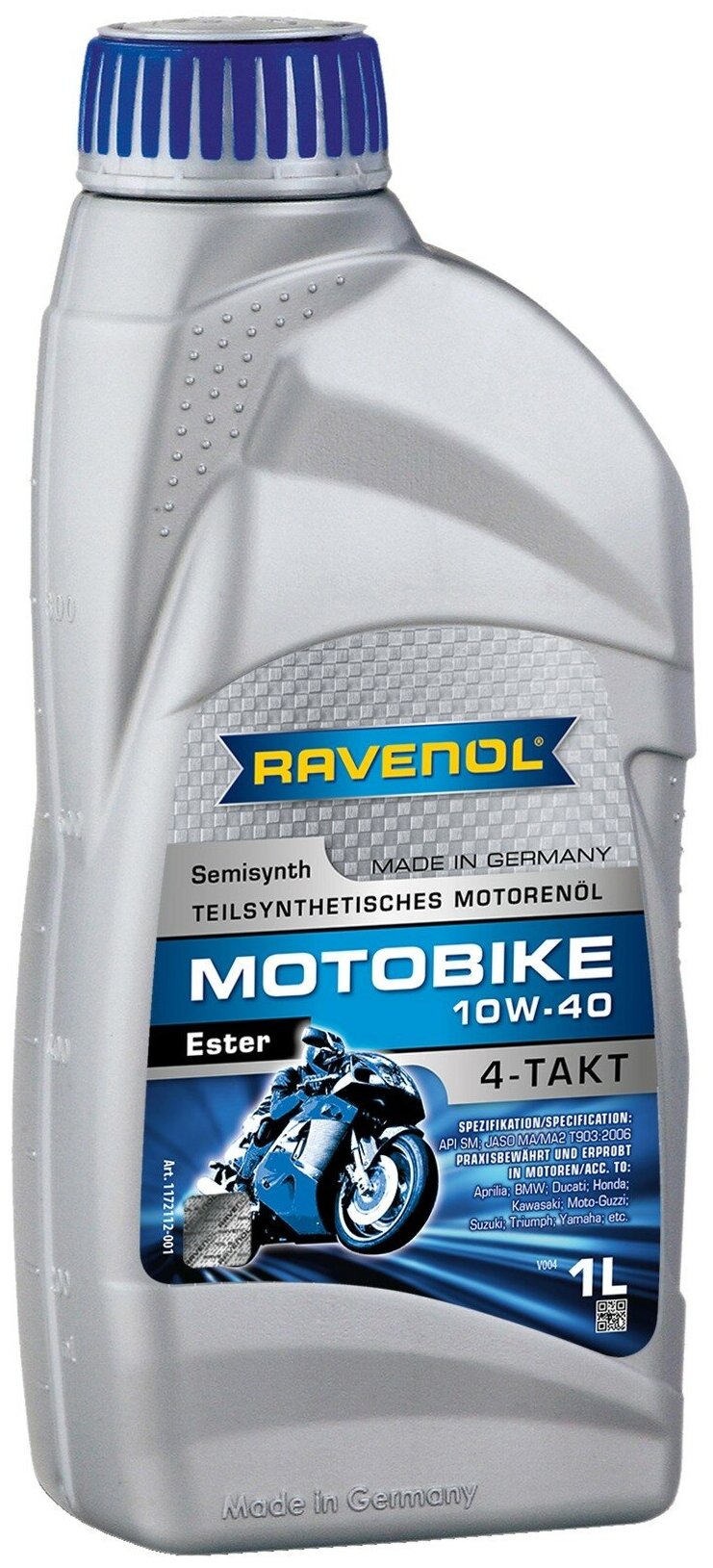 Лучшие цены. RAVENOL Motobike 4-T Ester 10W-40 - Синтетическое моторное масло, специально разработанное для 4-х тактных двигателей мотоциклов. Обеспечивает экономию топлива, защищает двигатель при экстремально тяжёлых условиях эксплуатации. Надёжно защищает мотоциклетный двигатель при экстремально тяжёлых условиях эксплуатации, включая длительную работу двигателя на высоких оборотах. Специально разработано для четырёхтактных двигателей спортивных мотоциклов, как с сухим сцеплением, так и со сцеплением в масляной ванне. Магазины в вашем городе.