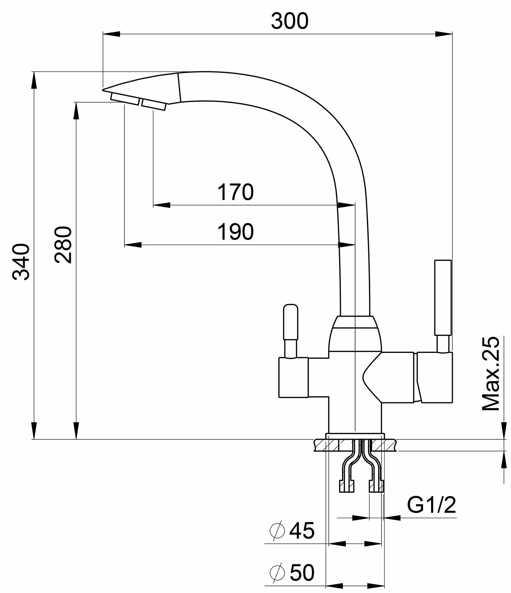 | Функции и возможности | поворотный излив / подключение к фильтру |