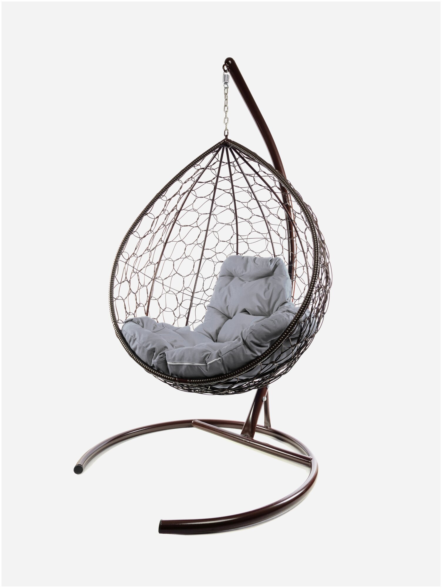 Садовая качель Подвесное кресло из ротанга "Капля" коричневое с серой подушкой M-Group