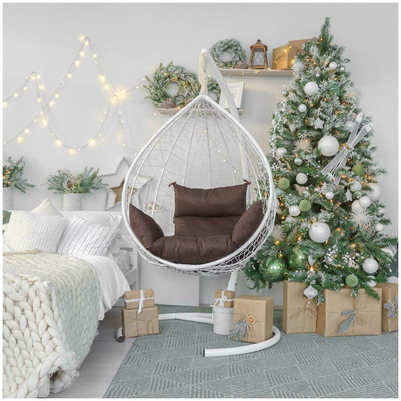 Подвесное кресло-кокон SEVILLA белый + каркас (коричневая подушка)