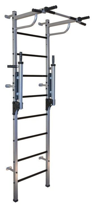 Шведская стенка, спортивный комплекс для дома Формула здоровья со складными брусьями Старт пристенный серебристый чёрный