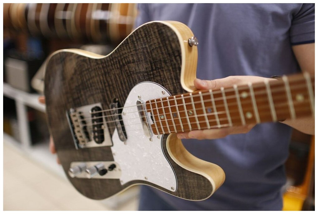 Лучшие цены. Электрогитара. Тип корпуса: телекастер. Корпус: тополь. Верхняя дека: огненный клен. Крепление грифа: на болтах. Гриф: обожженный клен. Накладка: обожженный клен. Количество ладов: 22. Мензура: 648 мм. Нековый звукосниматель: TN-5 (Alnico 5). Средний звукосниматель: OS-5 (Alnico 5) вкл. / выкл. на ручке тона (Push/Pull). Бриджевый звукосниматель: TB-5 (Alnico 5). Регуляторы: громкость, тон. Переключатель звукоснимателей: 3-х позиционный. Струнодержатель: Wilkinson. Фурнитура: хром. Цвет: черный. Магазины в вашем городе.