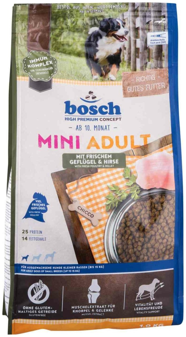 Корм для собак Bosch Adult Mini Poultry&Millet Сухой корм для собак мелких пород Птица и Просо 1кг