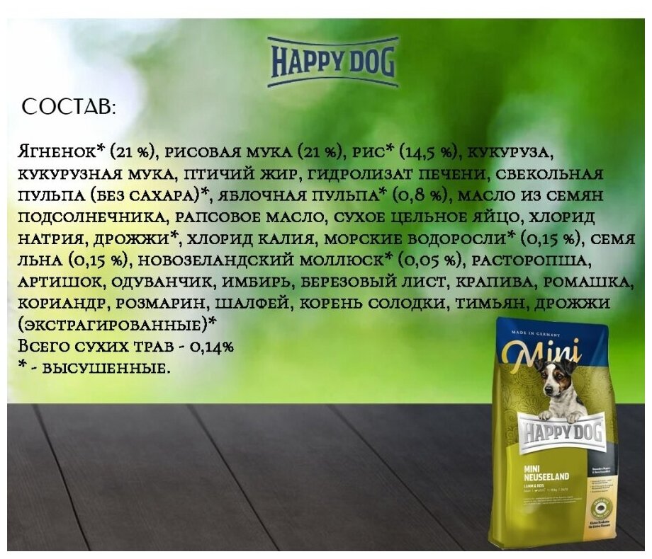 Happy Dog Supreme Mini Neuseeland корм для взрослых собак мелких пород склонных к аллергии Ягненок, 4 кг.