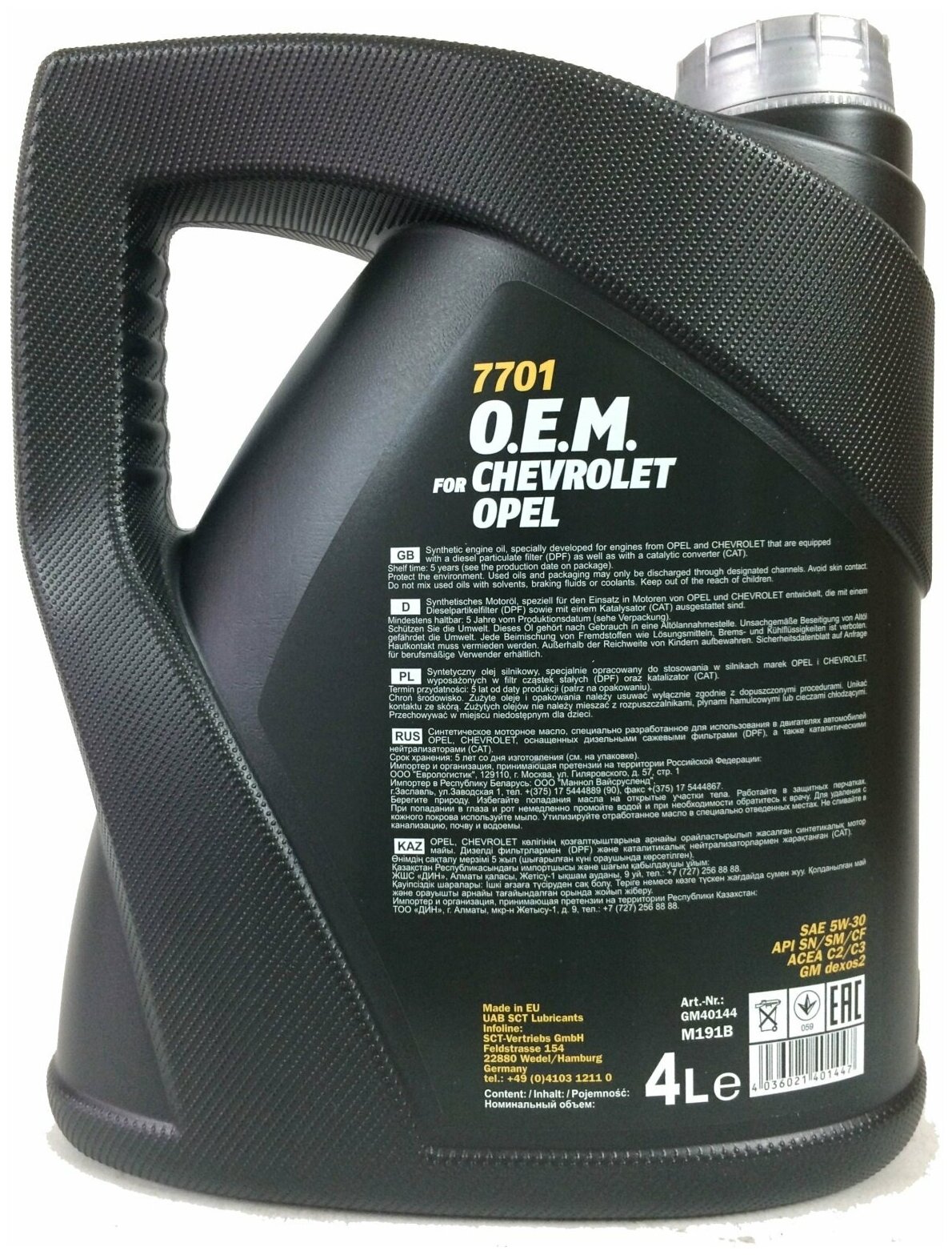 MANNOL Масло Моторное Mannol 7701 O.E.M. For Chevrolet Opel 5w-30 Синтетическое 4 Л 1077
