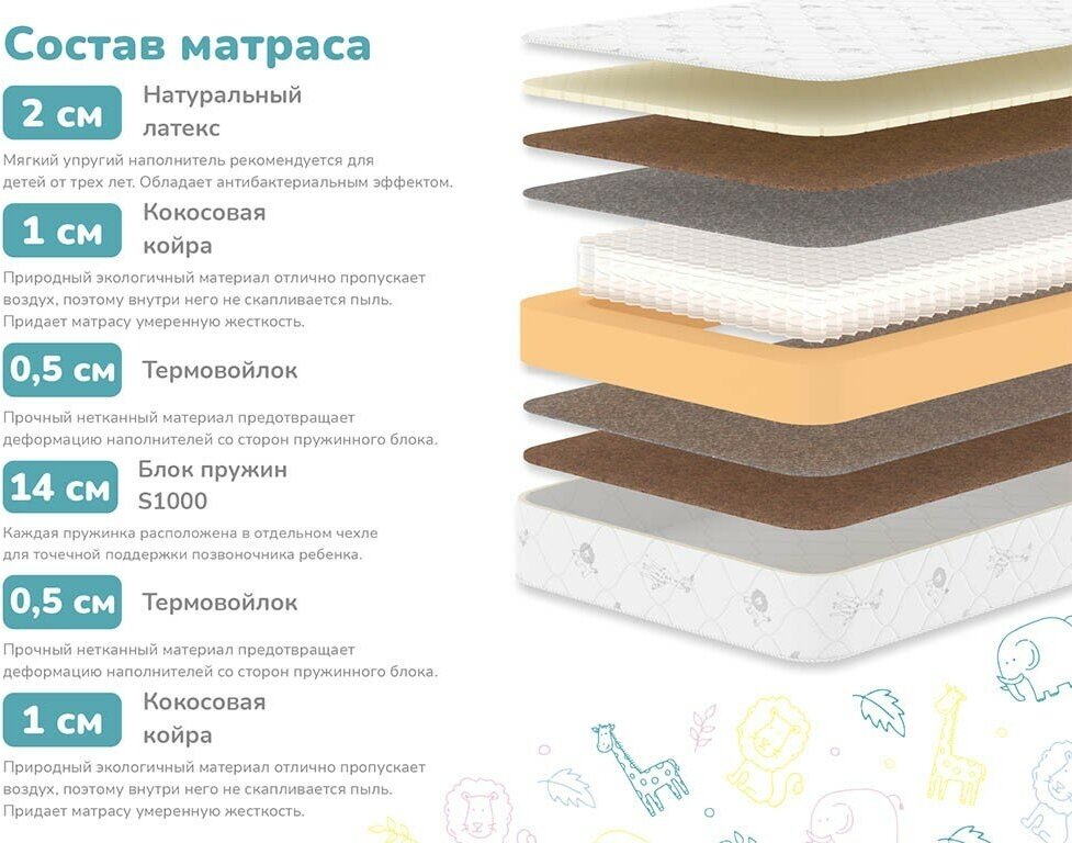 Лучшие цены. Чемпион - это детский матрас с разной жесткостью сторон на независимом пружинном блоке. Основой матраса является блок независимых пружин S1000 состоит из отдельных независимых пружин, заключенных в тканевые чехлы из материала спанбонд. Такой пружинный блок равномерно распределяет нагрузку по всей горизонтальной поверхности матраса, снимает мышечное напряжение и гарантирует комфортный отдых. Комфортный слой одной стороны представлен сочетание натурального латекса и кокосовой койры. Магазины в вашем городе.
